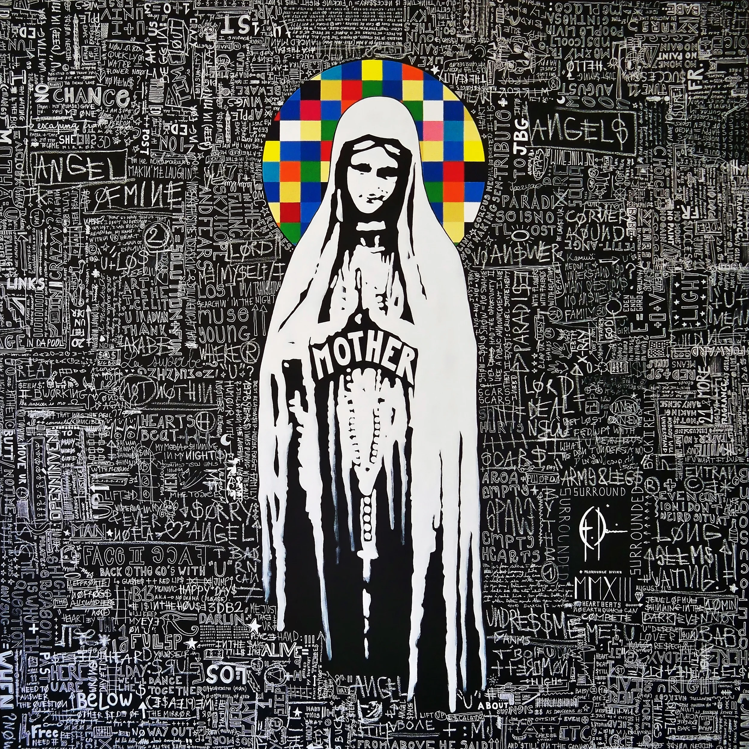 Devin's work is his personal narrative, a gift he shares with audiences. "My work is both a personal journal and my reflection of society that I observe each day through family, friends and media. In a way, I am revealing my secrets while at the same time giving my own interpretation of what I see around me by using words, symbols, humor, and provocation. Each artwork is like a page of a newspaper, and it can be turned one after another. That’s why I can’t seem to work on several artworks at the same time. I need to finish one before starting another."